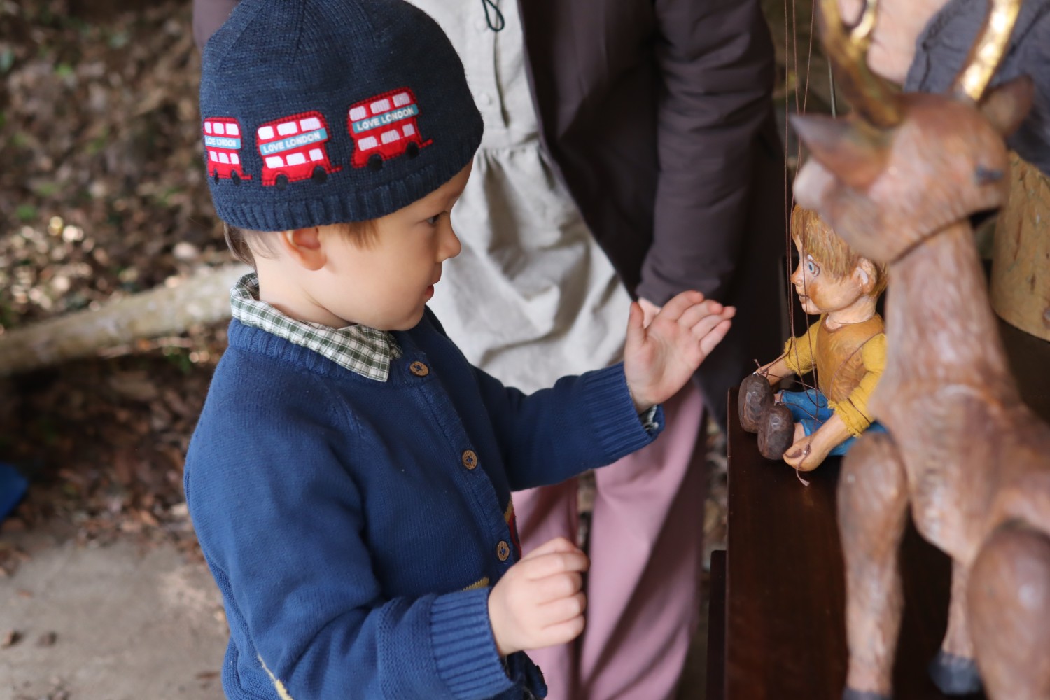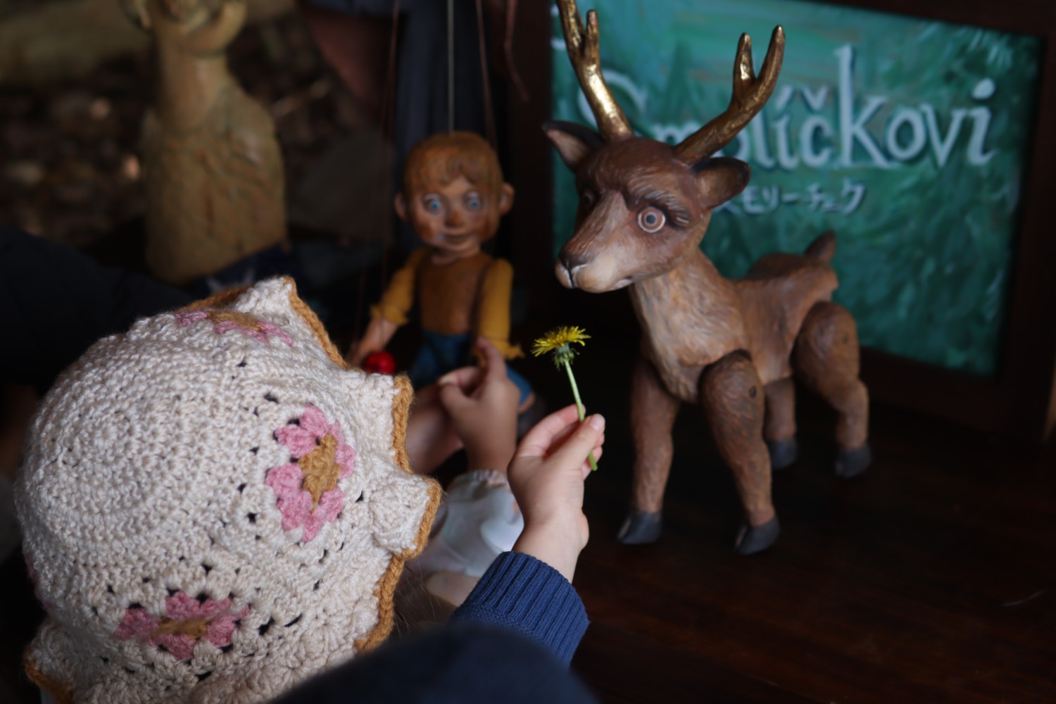 終演後の人形との触れ合いの時間に、スモリーチェクやシカの人形に